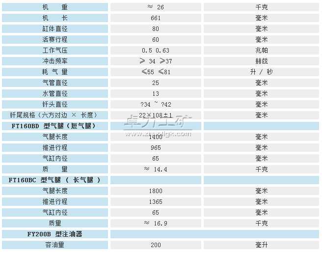 YT28氣腿式鑿巖機配套氣腿:FT160BC 、FT160BD:
