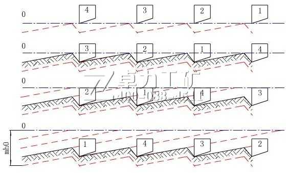 下圖為四翼刮刀鉆頭轉一圈吃入井底巖石展開圖