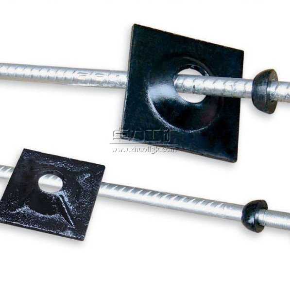 結(jié)構(gòu)特征:桿體全長均有軋制的連續(xù)螺紋,全長等強(qiáng)度;緊固端設(shè)有預(yù)應(yīng)力墊片和球頭形螺母。