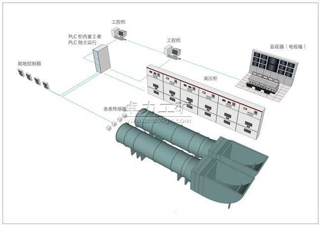 • 主要設備由PLC控制柜、工控機、操作臺、UPS電源、傳感器、低壓控制電纜組成。