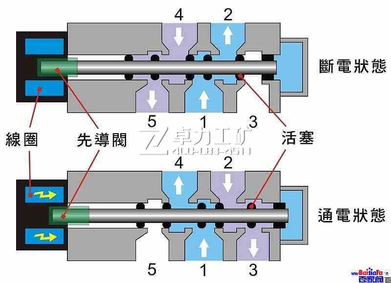 (3)電液換向閥,電液換向閥是由電磁換向閥和液動換向閥組成的復合閥。由電磁澀閥跟液動滑閥組成。電磁閥伏后導息用,能夠轉(zhuǎn)變把持液淌方向,從而改變液動滑閥閥芯的地位。用于大西型液壓裝備外。