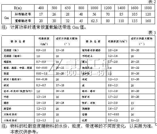 Gm——輸送帶、托輥、改向滾筒等旋轉零件的重量,數值可從表2中查到(kg/m);