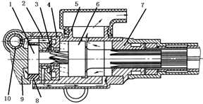 1-螺旋棒; 2-閥柜3-閥; 4-閥套; 5-氣缸; 6-活塞; 7-導向套; 8-棘輪; 11-操縱閥; 12-柄體