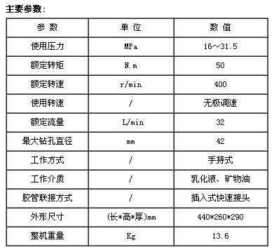 具有轉矩大、重量輕、鉆孔速度快、使用安全、操作方便等特點。
